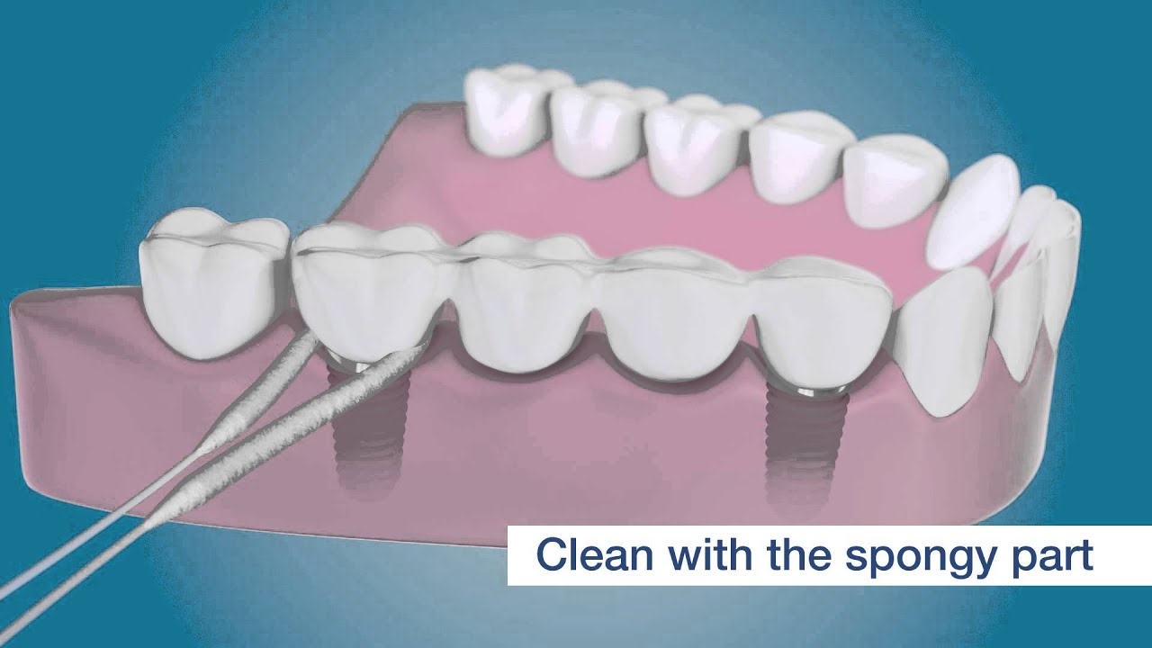 En este video se podrá ver como higienizar los implantes dentales con hilo dental (este hilo dental especial que cuenta con una parte esponjosa, una mas rígida y una tercera de hilo dental encerado).