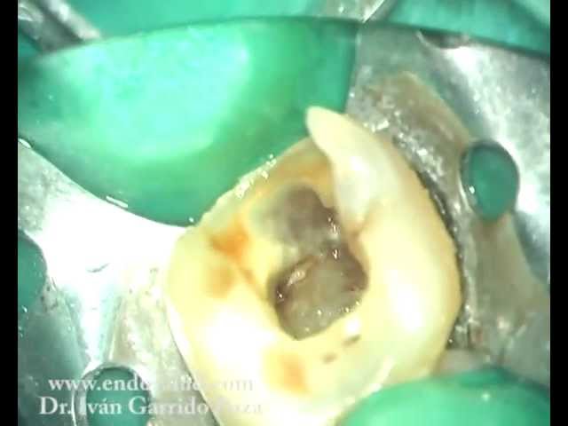 En este video se muestra la realización de un tratamiento de conducto en la pieza 46 y el sellado de una lesión de furcacion con MTA